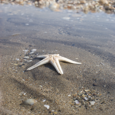 We came across this tired looking starfish in a beach pool the day after watching Bright Star, the movie about the doomed English romantic Poets love life. The movie was shot with an attractive blue filter. This was the simple inspiration behind this post processing!